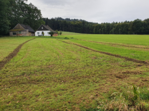 Da eine Fläche Grünland nicht einfach komplett umgebrochen werden darf, wurden hier nach Rücksprache mit der Unteren Naturschutzbehörde mehrere Streifen angelegt.