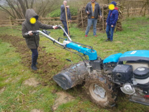 Und dann ist tatsächlich die erste Multi-Biotop-Fläche (Feuchtbiotop, Vogelschutzhecke, Trockenmauer, Blühwiese UND Streuobstwiese)