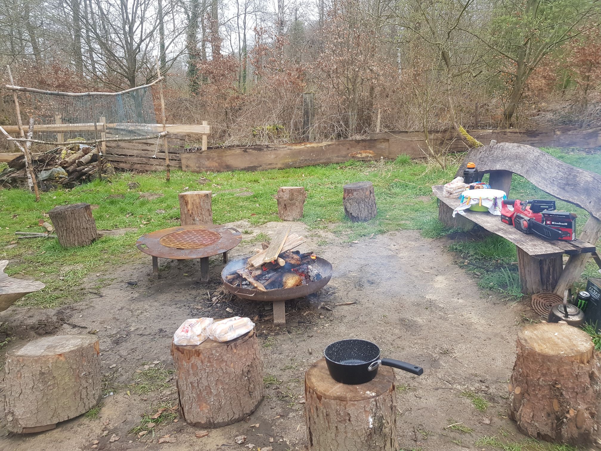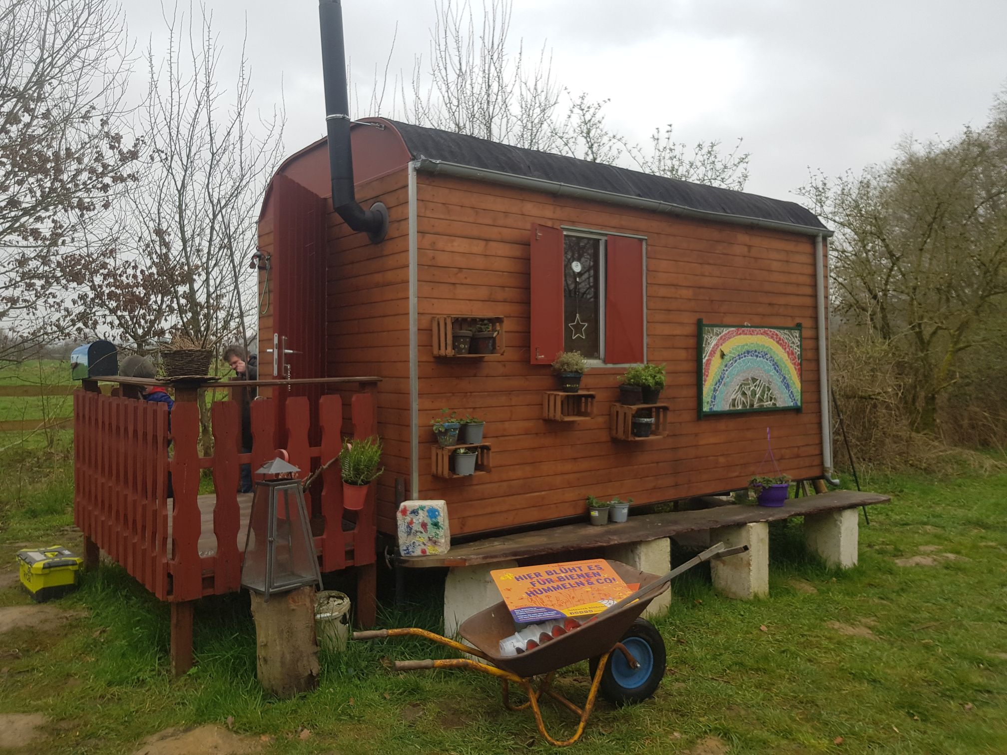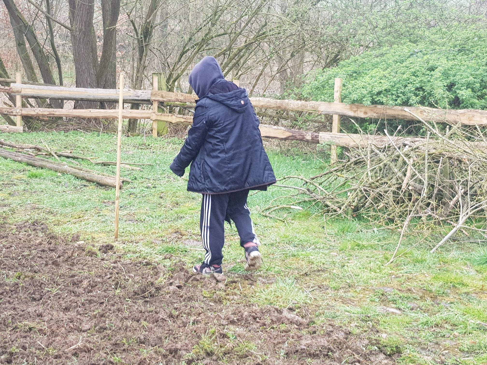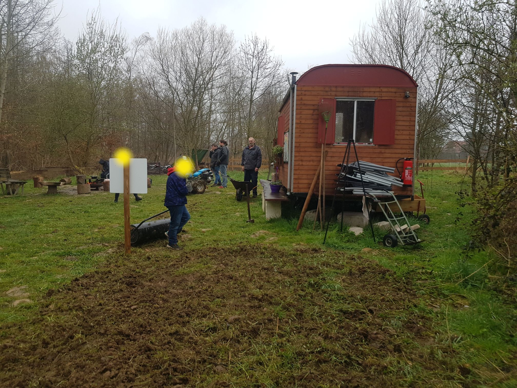 Und dann ist tatsächlich die erste Multi-Biotop-Fläche (Feuchtbiotop, Vogelschutzhecke, Trockenmauer, Blühwiese UND Streuobstwiese)