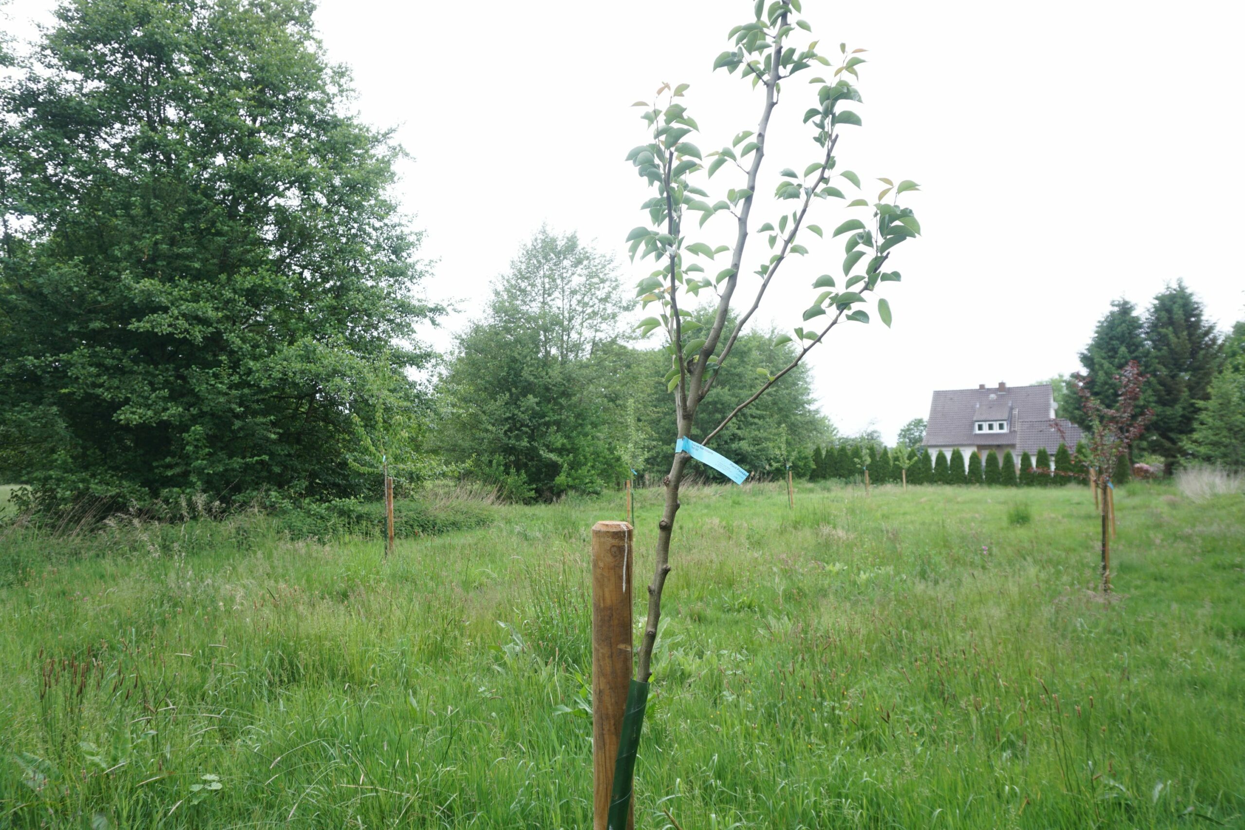 Sehr gut! Alle 20 Obstbäume sind angewachsen. Hier wird sich über die Jahre, bei entsprechender Pflege, eine klassische Streuobstwiese entwickeln. Bis zu 5000 Arten können von solchen Streuobstwiesen einen Nutzen haben, Menschen inklusive ;-).
