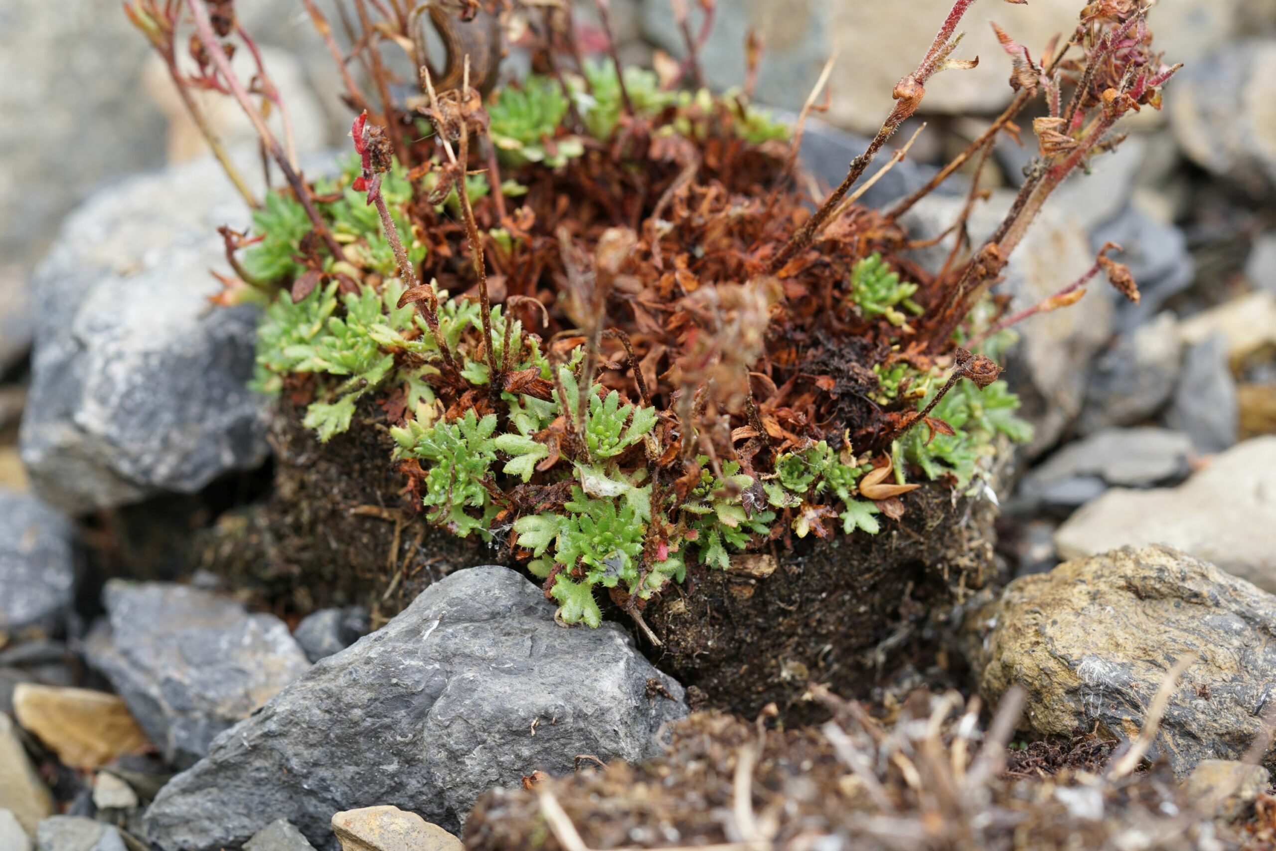 Verschiedene dort eingepflanzte Steinpflanzen sind angewachsen, einige Stauden haben es gleichwohl jedoch nicht geschafft.