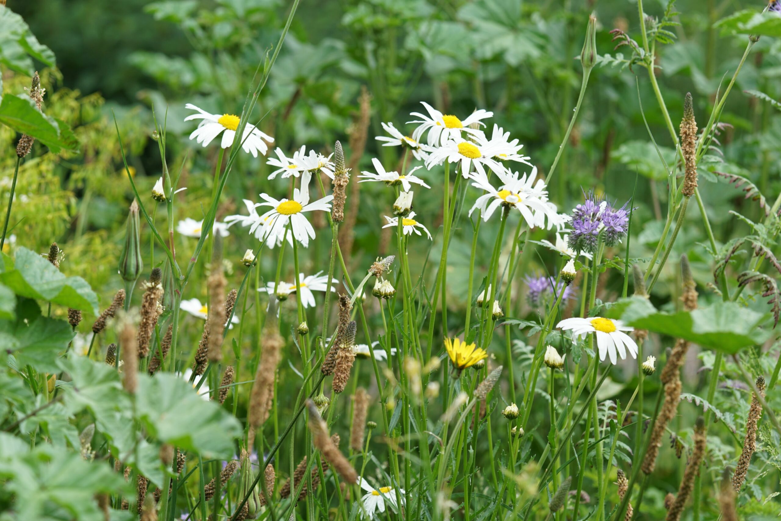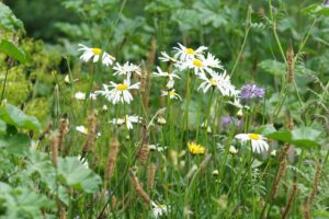 Die Sommermahd von hier wird umgesetzt, wenn ein Großteil der Mageriten verblüht sind.